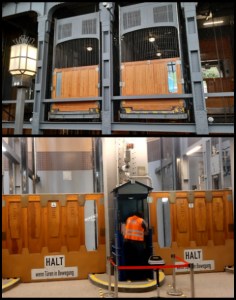Der Gegensatz könnte kaum größer sein. Der Aufzug gilt als das technisch sicherste Transportmittel überhaupt; für die Statistik ist Treppensteigen gefährlicher. Trotzdem gibt es in den USA Spezialkliniken für Liftphobien.